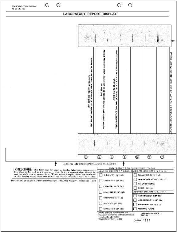 LEARNING OBJECTIVE: Identify the correct steps to perform blood collection by the finger puncture method and venipuncture method, and recall Standard Precautions and other safety precautions that apply to blood collection. There are two principal methods of obtaining blood specimens: the finger puncture method and the venipuncture method. For most clinical laboratory tests requiring a blood specimen, venous blood obtained by venipuncture is preferred. Blood collected by venipuncture is less likely to become contaminated, and the volume of blood collected is greater. Infection control practices, equipment requirements, and step-by-step instructions on performing both of these blood collection methods will be discussed in the following sections. STANDARD PRECAUTIONS Needles and sharps used in the blood collection process should be handled with extreme caution and disposed of in biohazard sharps containers. Sharps containers should be conveniently located near phlebotomy work sites. Absorbent materials, such as cotton 2 x 2'sused to cover blood extraction sites, normally contain only a small amount of blood and can be disposed of as general waste. However, if a large amount of blood is absorbed, the absorbent material should be placed in a biohazard waste container and treated as infectious waste. Clean phlebotomy work site equipment and furniture daily with a disinfectant. FINGER PUNCTURE Materials Required for Finger Puncture Procedure To perform a finger puncture, the following materials are required: Sterile gauze pads (2" x 2") Figure 7-2.-SF-545, Laboratory Report Display. Finger Puncture Procedure 1. Explain the procedure to the patient. 3. Cleanse the fingertip with an alcohol pad or povidone-iodine solution and let dry. 4. Take a lancet and make a quick deep stab on the side of the finger (off-center). To obtain a large rounded drop, the puncture should be across the striations of the fingertip. See figure 7-3. 5. Wipe away the first drop of blood to avoid dilution with tissue fluid. Avoid squeezing the fingertip to accelerate bleeding as this tends to dilute the blood with excess tissue fluid, but gentle pressure some distance above the puncture site may be applied to obtain a free flow of blood. 6. When the required blood has been obtained, apply a pad of sterile gauze and instruct the patient to apply pressure, then apply a bandage. When dealing with infants and very small children, the heel or great toe puncture is the best method to obtain a blood specimen. This method is performed in much the same way. |