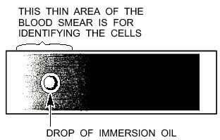 Figure 7-19.-Placement of immersion oil on blood smear.